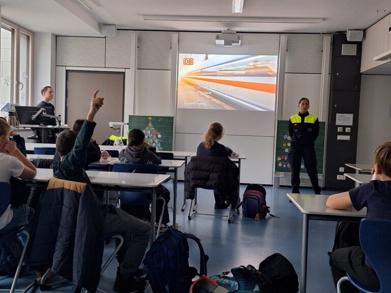 Unsere 6. Klassen haben die Friedenstage vor Weihnachten dazu genutzt, sich durch Frau Topoglu und Herrn Eicker vom Präventionsteam der Bahn über die Gefahren im Bahnbetrieb aufklären zu lassen. Das